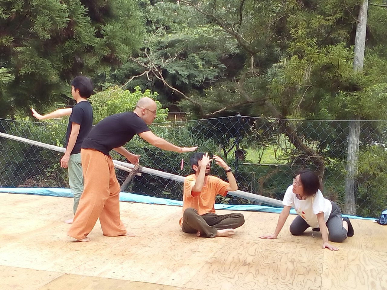意見を言ったり、人の意見を聞いて自分の意見が変わる事を楽しむ知的な楽しみ。変化する自分を恐れずに楽しむ。知的好奇心とブレインストーミングをお互いに味わい楽しめるメンバーが、頭でっかちにならずに体で変化を感じ取って、前に進んでいくパフォーマー達との稽古。